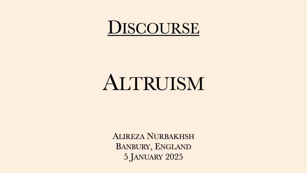 Following are some discourses by Dr. Alireza Nurbakhsh, Master (Pir) of the Nimatullahi Sufi Order. Additional discourses and spiritual poetry are available on Instagram @nimatullahi_sufi_house or Facebook @HoustonSufiCenter.